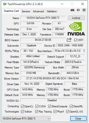 绘图核心:NVIDIA GeForce RTX 3060 Ti