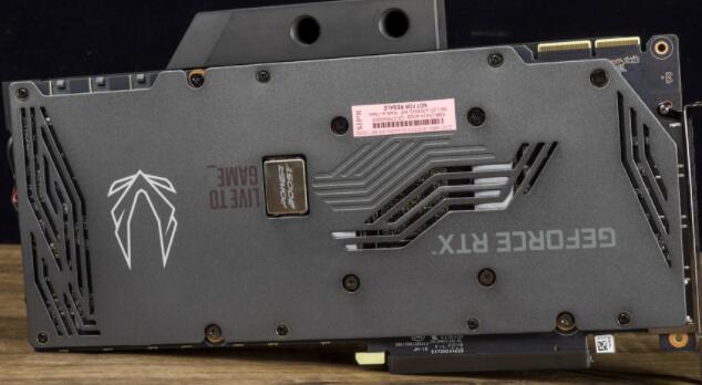 再来看到显卡背板,有着金属强化设计,并有着ZOTAC RTX 30系列都有的线条开孔,虽然显卡是水冷设计,但显卡前端也有这次RTX 30系列都有的前端开孔。另外也可以看到ZOTAC RTX 3090显卡才有的POWERBOOST芯片,这是用来进行电流控制的片,提供即时的电流管制与电偏差响应的功能。