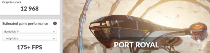 3DMark Port Royal测试,是模拟基于DirectX 12的DXR API游戏,在2K分辨率下,将电脑在运行光线追踪游戏时的表现以分数化来评断。ZOTAC GAMING GeForce RTX 3090 ArcticStorm在Graphics score上分获得12968分。