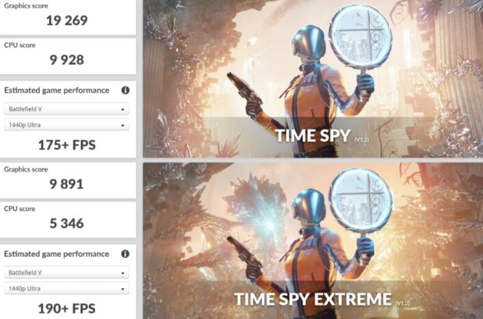 3DMark Time Spy测试,是模拟基于DirectX 12 API的游戏,将电脑在运行AAA游戏时的表现以分数化来评断。而3DMark Time Spy与Extreme分别在2K与4K分辨率下运行。ZOTAC GAMING GeForce RTX 3090 ArcticStorm在Graphics score上分别获得19269与9891分。
