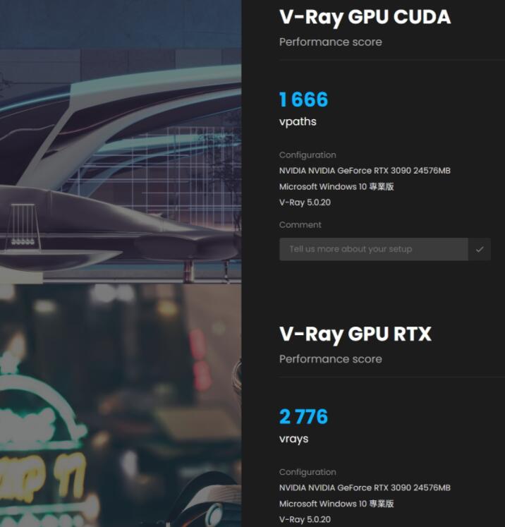V-Ray 5 Benchmark基于V-Ray渲染器的测试软件,以光线追踪的耗时进行测试,能以分数化来判断CPU或GPU的渲染性能,并在新的V-Ray 5版本加入V-Ray CUDA跟V-Ray RTX的测试,RTX 3090 ArcticStorm在V-RAY GPU CUDA获得1666 vpaths、V-RAY GPU RTX 2776 mrays。