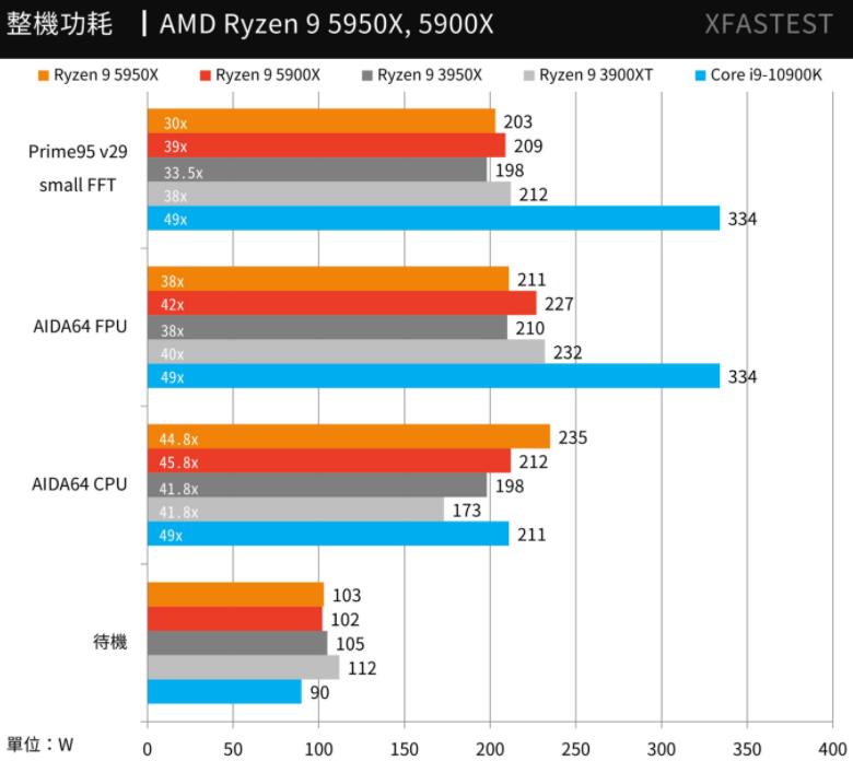 功耗方面,计算电脑整机功耗,由于Precision Boost 2的机制,让5950X与5900X整机功耗最高只到235W、220W左右,提供给各位参考。