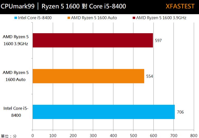 CPUmark 99测试,则是评鉴处理器的单核性能,因此这项目由i5-8400较高的时脉与单核性能领先。