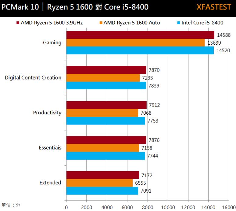 这波6核心对决,i5-8400凭着高时脉与单核心性能,还是在部分单线程、单核测试上赢过对手,但是Ryzen 5 1600凭着多线程技术6核心12线程,于多核心测试上碾过对手,况且Ryzen可超频的设计,将Ryzen 5 1600超频至3.9GHz,不仅可稳定跑完测试,并有着更强悍的多核心性能。