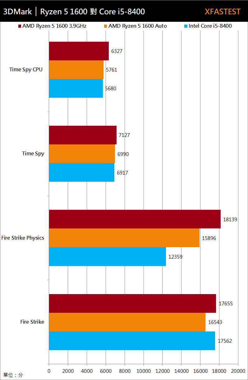 3DMark绘图性能测试方面,则分为总分与物理运算CPU得分。Ryzen 5 1600亦在超频后于总分与物理分数上技压群雄,对于游戏玩家这两颗处理器都有相当好的性能,可发挥出显卡的性能;但另一方面,Ryzen 5 1600有着多线程技术,更可在游戏同时进行直播任务。
