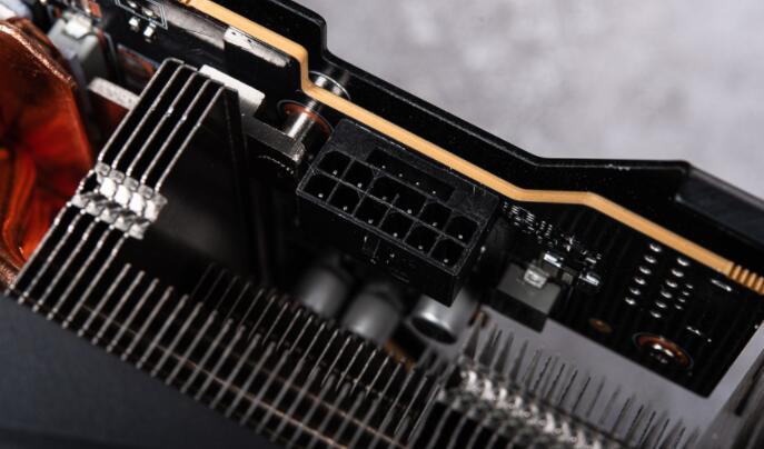 显卡上方侧面可见霸气外露的缜密散热鳍片,并可窥见均热板、热导管等复合散热设计;显卡供电则需要使用专用的12-pin连接线,玩家可透过配件的12-pin转3 x 8-pin连接线来连接电源供应器。