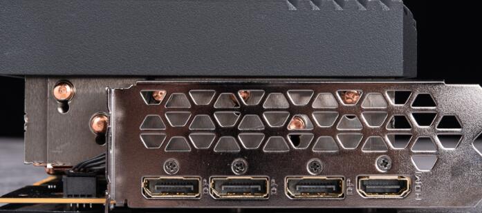 虽然显卡厚度来到4 Slot的空间,但是后方还是采用双槽档板,而显卡提供3个DisplayPort 1.4a与1个HDMI 2.1图像输出。