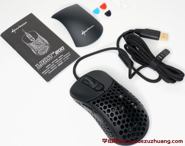 包装内容:鼠标本体、说明书、可替换式上盖、可替换式DPI开关、PTFE材质的鼠脚。