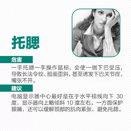 托腮,皱眉,跷二郎腿,弯腰驼背,电脑贴墙放,边吃零食边上网……这些不良习惯,你中招了吗?