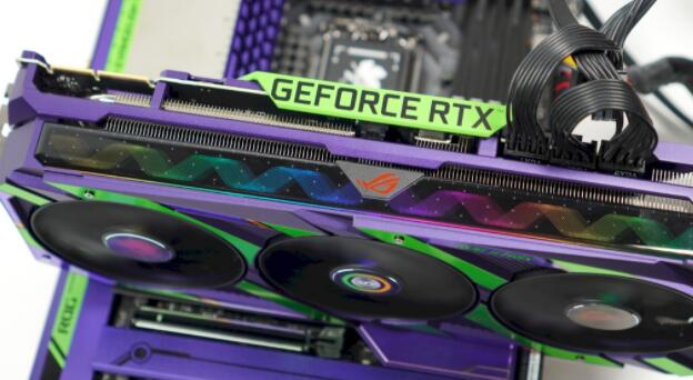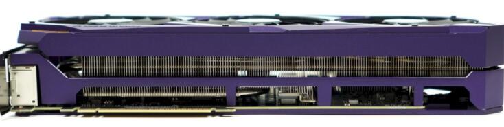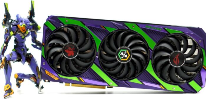 显卡使用大量金属材质,特殊的紫色金属处理,搭配上绿色,点缀一些些的橘黄色,堆叠出生物机械感外观,同时也符合EVA 01初号机的设定。