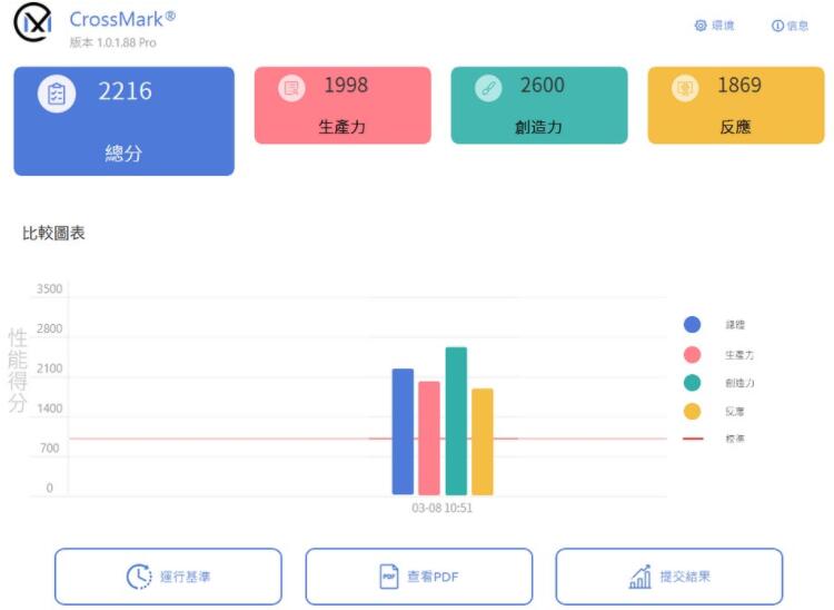 跨平台的电脑性能测试工具CrossMark,则是由BAPCo所开发的免费测试工具,支持Windows、iOS/iPadOS、macOS与Android等平台,并针对电脑的生产力,如文字编辑、电子表格、网页浏览,以及创作类的相片编辑、整理与视频编辑等工作,再加上电脑反应速度进行测试。