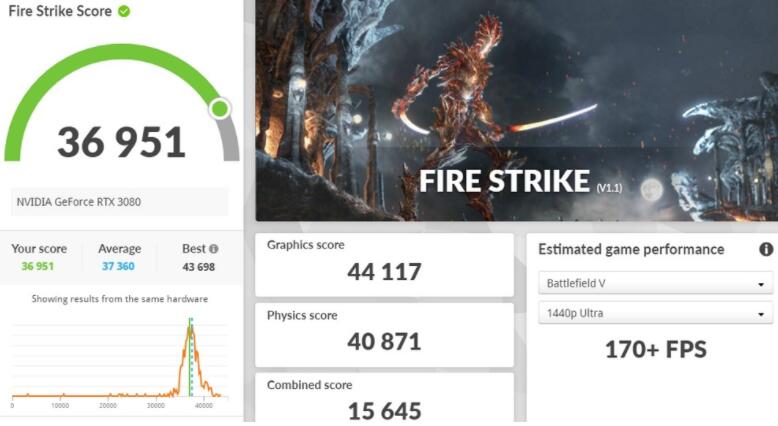 3DMark Fire Strike测试使用RTX 3080显卡,其CPU物理Physics分数有着40871分;针对DirectX 12所设计的Time Spy测试,CPU获得了18922分的成绩。