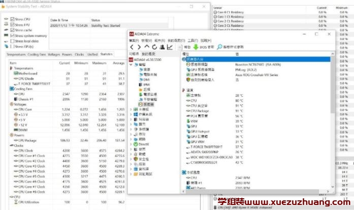 这里用Aida64 System Stability Test来测试烧机的温度及功耗,AMD Ryzen 9 5950X是开启PBO状态。